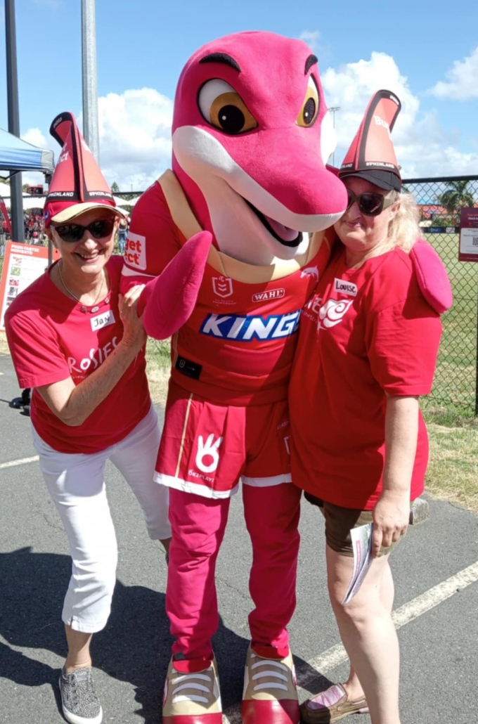Jan & Louise with the Dolphins NRL team mascot